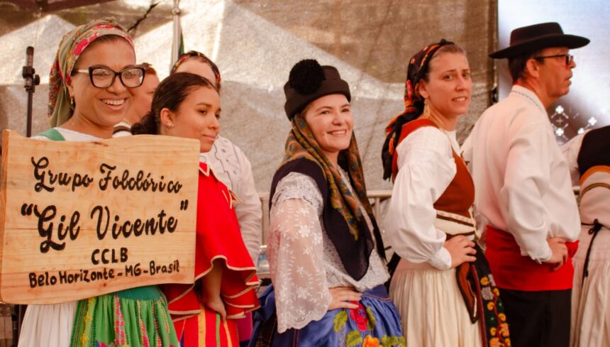Integrantes do Grupo Folclórico Gil Vicente, de Belo Horizonte, apresentam trajes típicos portugueses durante a Festa Portuguesa, um dos eventos centrais da Semana de Portugal 2025.
