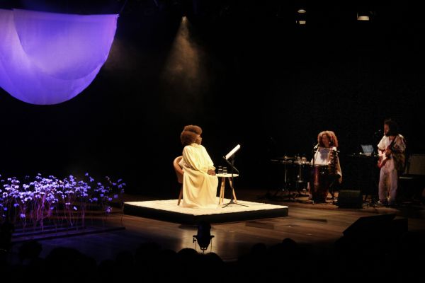 A peça costura música ao vivo, memórias e silêncio como caminhos de resistência e reconexão com a palavra.