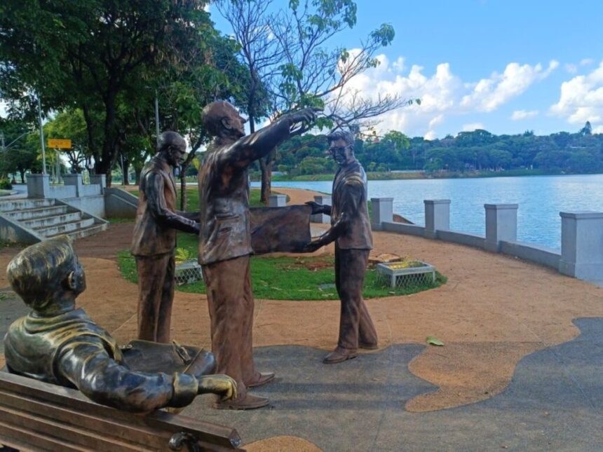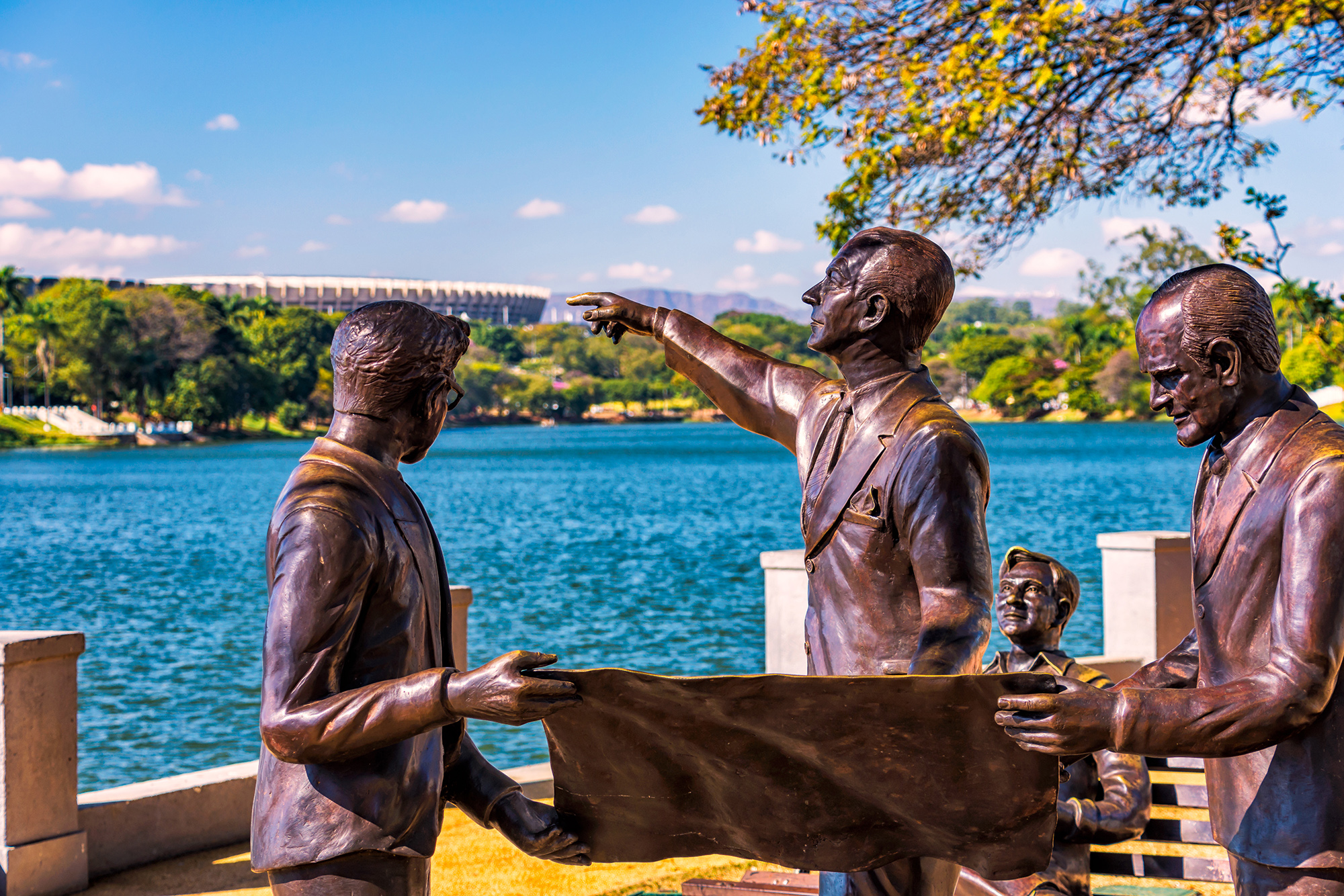 As estátuas estão localizadas na orla da Lagoa da Pampulha, em frente à Casa Kubitschek.